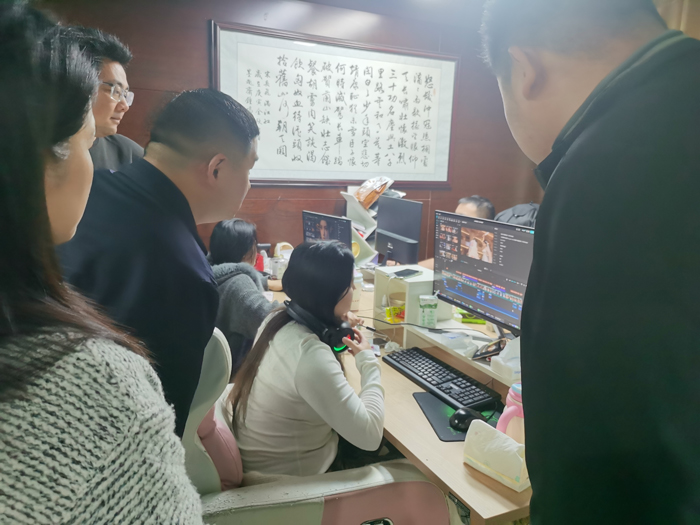 在公司工作间,刘罗玉一行考察了AI剧本撰写,分镜头提示词撰写,视频合成编辑等多个环节。黄山市忆仁网络科技有限公司法人代表陈凌华介绍,忆仁网络以前一家专注于自媒体运营的新型媒体公司,团队由经验丰富的媒体人、技术精英组成,拥有极高的内容创造和账号运营能力,今年,公司主营业务转向AI漫剧剪辑创作,取得了番茄、知乎等多个小说平台的版权授权,与风行视频达成战略合作协议,目前,公司已经具备四天生产一部AI漫剧的能力。