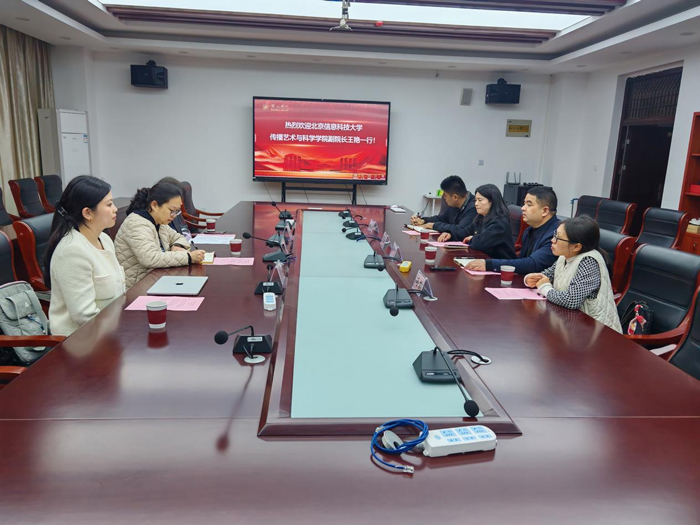 43上午,北京信息科技大学传播艺术与科学学院副院长王艳,办公室主任赵玉静,网络与新媒体专业系副主任齐彦丽一行来我院调研。副院长刘罗玉,新闻学教研室主任贾芳芳,戏文教研室主任冯韵,广编教研室主任黄天书参与调研与座谈。