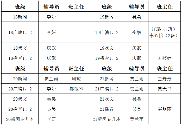 文传学院21-22-1辅导员、班主任带班情况