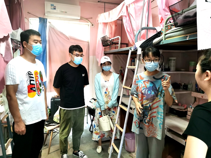 19新闻班王子旭同学表示,老师们对宿舍进行走访与探望,带来了关心与问候,倍感温暖。19新闻班周静同学表示,集体生活不仅要相互包容、和谐共处,更要注意宿舍安全,始终把安全放在第一位,对自己的生命安全负责。