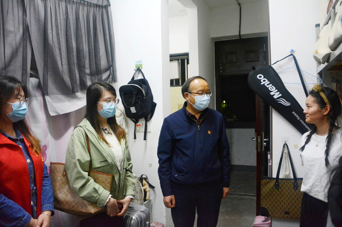 文传学院领导师生一行查看了学院54间宿舍,仔细检查宿舍安全卫生状况,并悉心询问同学们在疫情防控期间的学习和生活情况。汪家庚说,当前疫情形势严峻复杂,省内也有疫情多发情况,校园疫情防控工作压力很大,希望同学们严格遵守学校疫情防控规定,理解支持配合校园防控工作,妥善安排好自己的学习和生活。每到一处,领导老师不时提醒同学们一定要牢固树立安全意识,特别是要注意用电安全,严禁使用违规电器,从源头上消除安全隐患。
