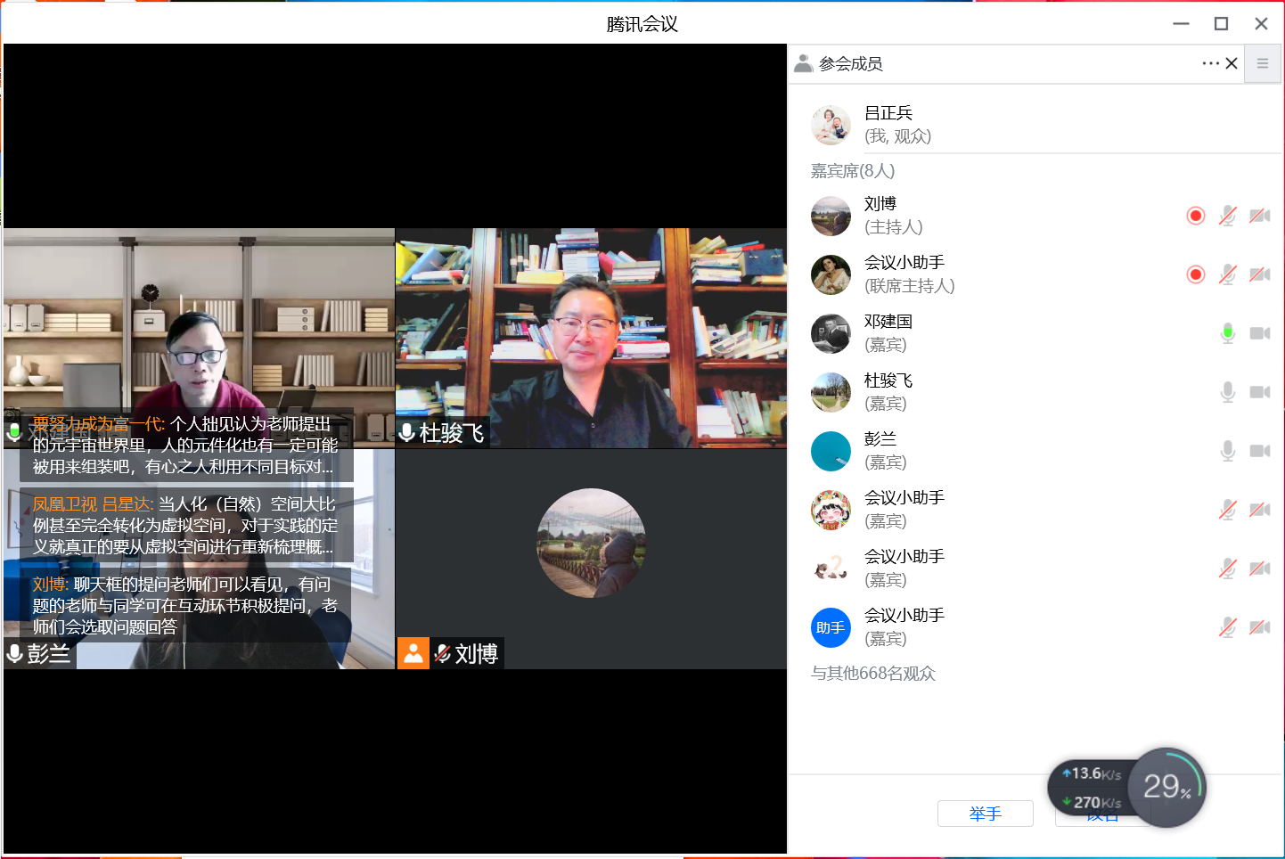 元宇宙是一个对当下和未来都有深远影响的传播学课题。随着深度媒介化生存环境的出现,远程“具身”互动越来越普遍,用户如何处理与自己、与他人以及环境之间的关系成为当代人迫切需要解决的现实问题。三位学者在对谈中给予了学术回应,相关的学术观点对吕正兵正在开展的课题研究富有启发。