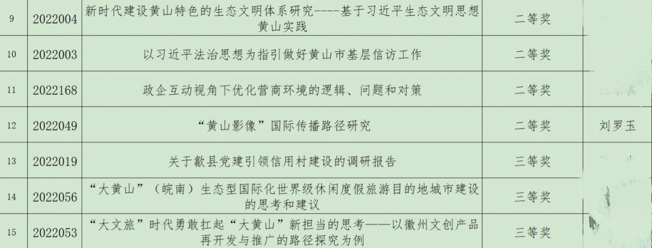 据了解,经公开申报、资格审查和社科联会议研究,2022年黄山市社会科学联合会批准立项课题226项,经课题结项申报和专家评审,拟对205项课题成果予以结项。其中,一等奖4项,二等奖8项,三等奖15项。