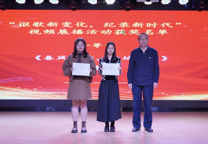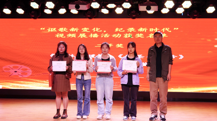 在最后举行的“讴歌新变化,记录新时代”视频展播活动颁奖仪式环节,来自广播电视编导专业学生创造的《遇蛇》、《春风有信,南坑花开》等12部作品分获一、二、三等奖。