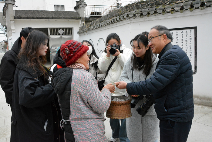 12月17日,太阳成集团tyc972823级新闻学专升本班40名同学前往屯溪区黎阳印象、屯溪老街、徽州区西溪南村和莘墟村开展摄影创作实践,由院新闻摄影课程授课老师汪家庚全程指导。