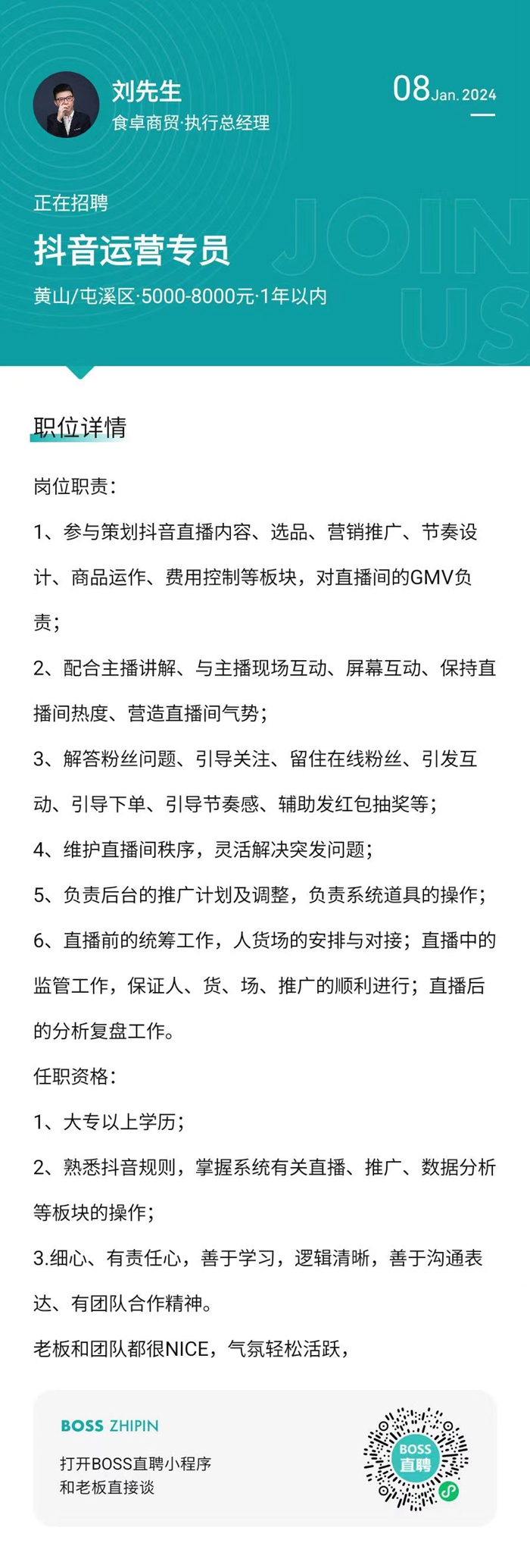 黄山食卓商贸有限公司招聘信息