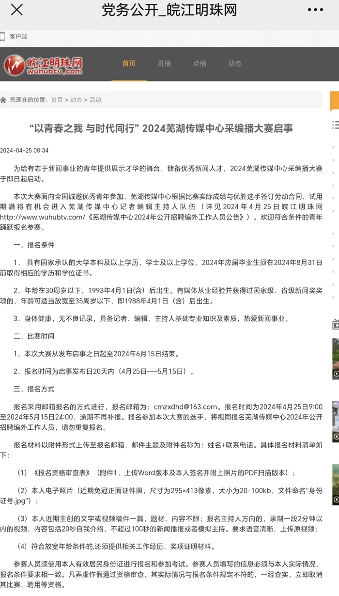 为给有志于新闻事业的青年提供展示才华的舞台,储备优秀新闻人才,2024芜湖传媒中心采编播大赛于即日起启动。