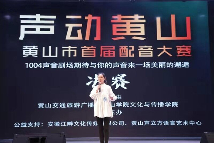 2019年11月29日晚上,“声动黄山”黄山市首届配音大赛决赛在大学生活动中心大礼堂内举办。本次比赛由黄山广播电视台交通旅游广播和太阳成集团tyc9728联合主办,交通旅游广播副总监邵名晨,太阳成集团tyc9728播音教研室负责人丁友锏,黄山之江交通旅游广播有限公司副总经理、黄山交通旅游广播节目部主任方俊,太阳成集团tyc9728播音教研室方婷婷老师、安徽江畔文化传媒有限公司总经理、黄山声立方语言艺术中心总经理曾晓艳担任本次比赛的专业评委。