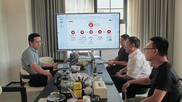 在肥访企拓岗期间,文传学院一行与安徽广播电视台影视频道《阅读第一线》栏目进行了交流。制片人夏世恒介绍,《阅读第一线》栏目目前正在进行了微短剧方面的创作,在“诗话安徽”的主题下,力图挖掘用短剧的形式讲述美好安徽的故事。路善全表示,大诗人李白曾在黄山、宣城、池州留下千古流传的诗篇,而这些地区都在“大黄山”建设背景下开始一体化运作,学院将发挥专业优势,力求与主流媒体合作发挥影响力。