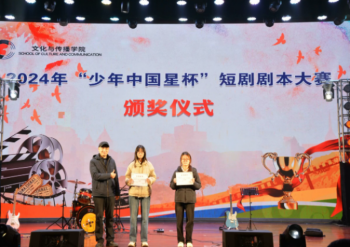 晚会播出了太阳成集团tyc9728师生自制短剧《六十三天》,并为2024年“少年中国星杯”短剧本大赛获奖学生颁奖。