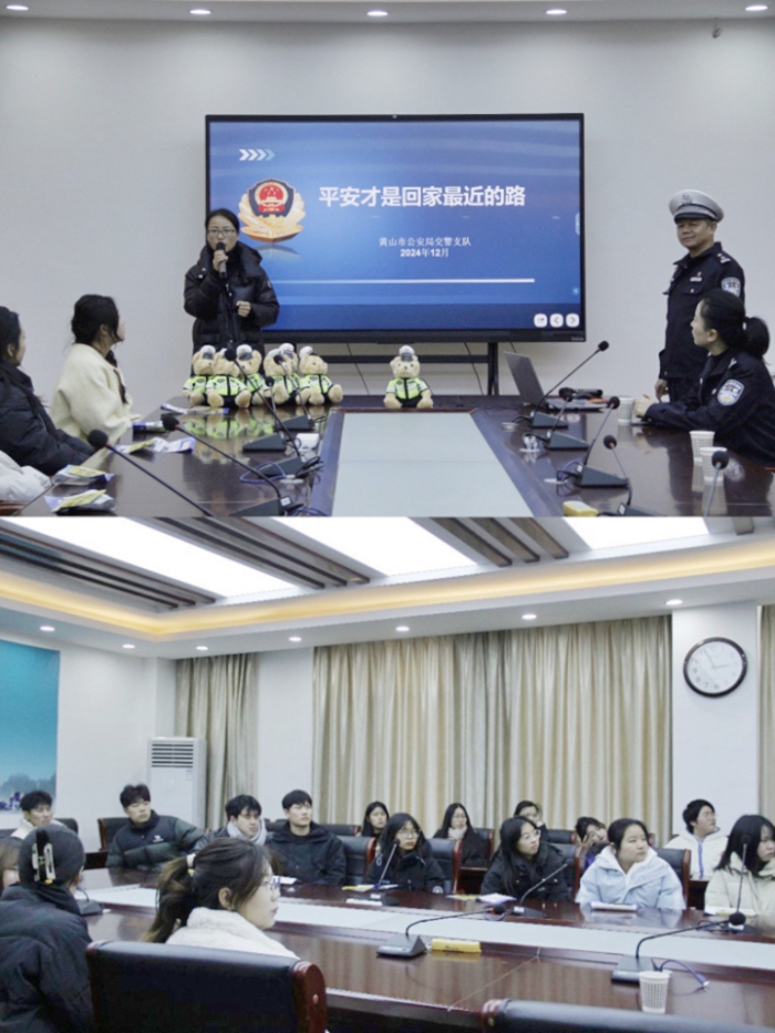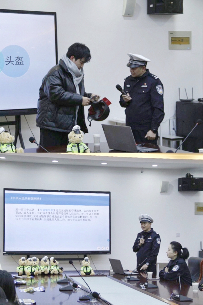 12月18日下午,太阳成集团tyc9728邀请黄山市公安局交警支队在文澜楼320会议室举办交通安全宣讲暨“122全国交通安全日”文化作品征集活动颁奖仪式。党委副书记、纪委书记郑静主持活动,太阳成集团tyc9728各班安全委员参加活动。