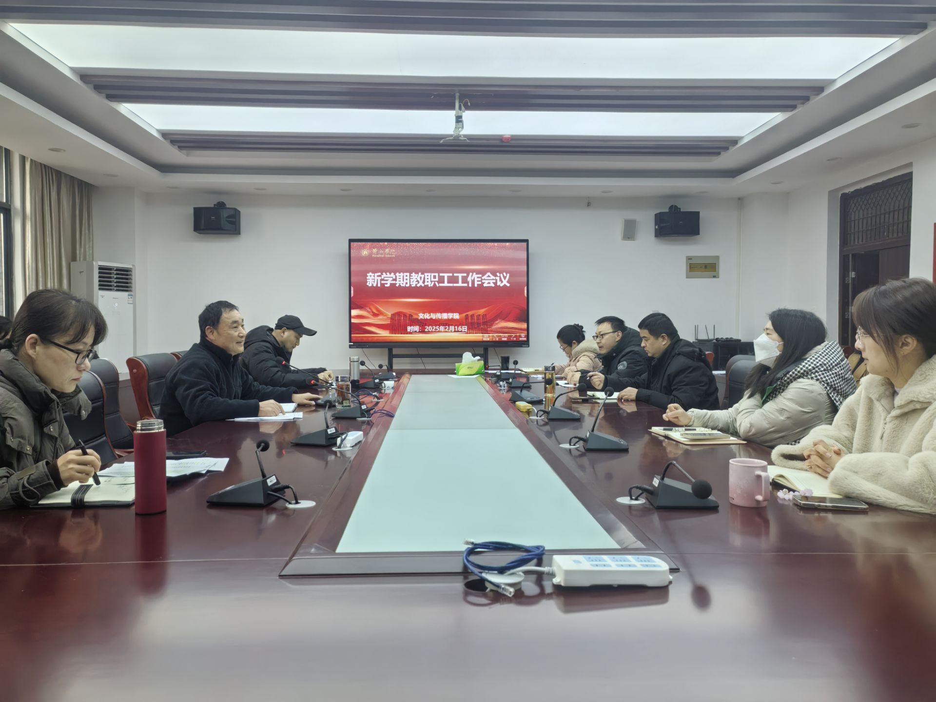 2月16日上午,文传学院在文澜楼320会议室召开2025年春季新学期全体教职工工作会议,安排2025年工作。学院全体教职员工参加,会议由院党委书记路善全主持。